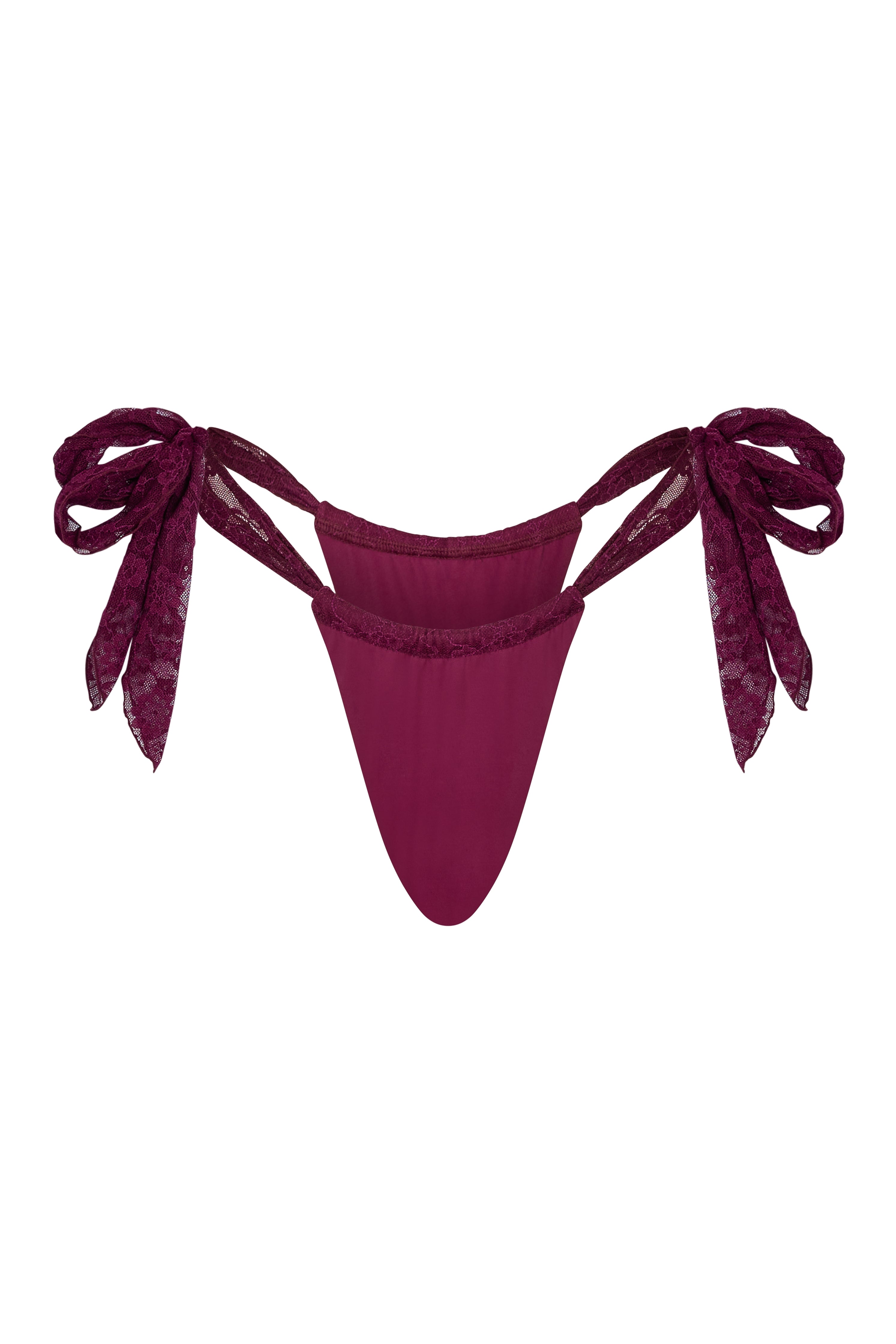 The Hot Mess Bottom reimagines the tie-side silhouette with a softer, more sculpted approach. A gently ruched front panel creates a refined drape, meeting a clean inner layer that gives the style its smooth, elongated shape. The double side straps sit lightly on the hips, finished with oversized mesh ties that add movement without overwhelming the design. The result is a bottom that feels playful yet polished.