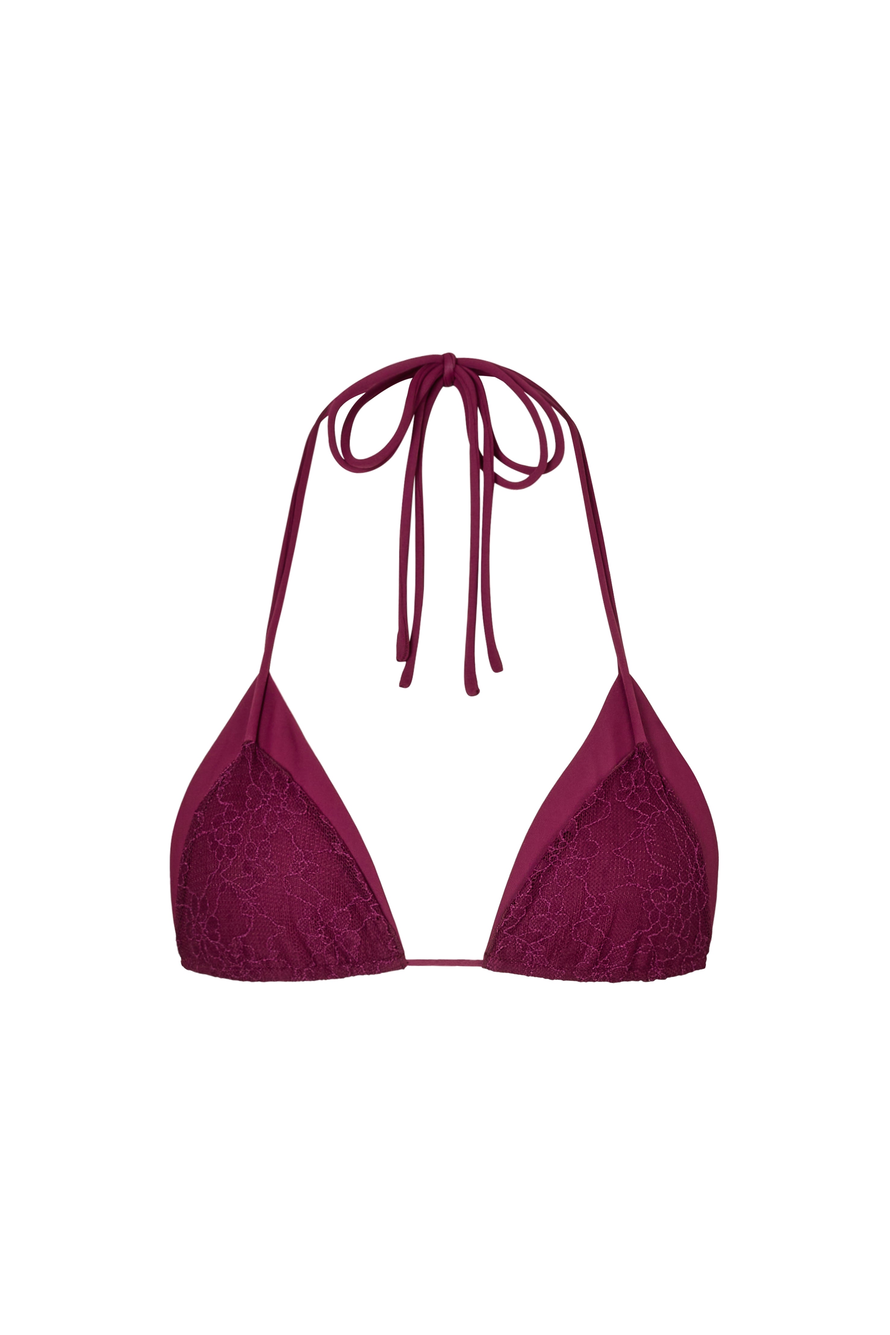 The No Rules Top takes the classic triangle and reworks it with a sharper, more contemporary attitude. The double layer construction with sheer lace mesh over a smooth base creates a soft transparency and depth. Clean edges, slim ties, and a precise cut give the top a sculpted, streamlined look, while the adjustable cups allow you to refine the shape to your style. Effortless, modern, and quietly distinctive, its the top of the season.