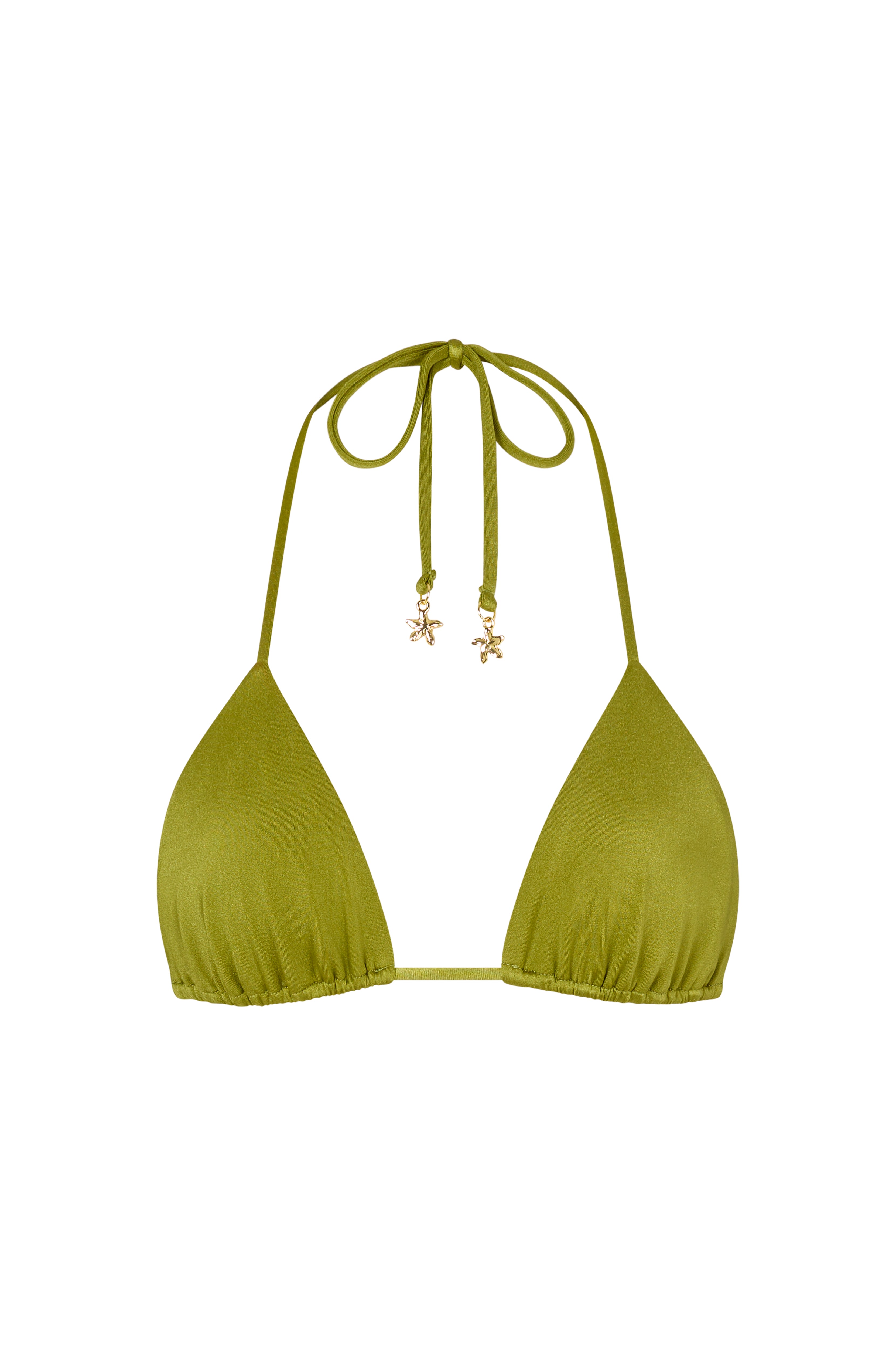 The Rio Top is a the ultimate summer triangle top. Designed with movable cups, it allows you to adjust coverage and spacing to suit your shape, while removable padding offers flexibility in how you wear it. The soft printed fabric is made to sculpt the body, while the golden flower cord stoppers add a jewelled sophisticated finish.