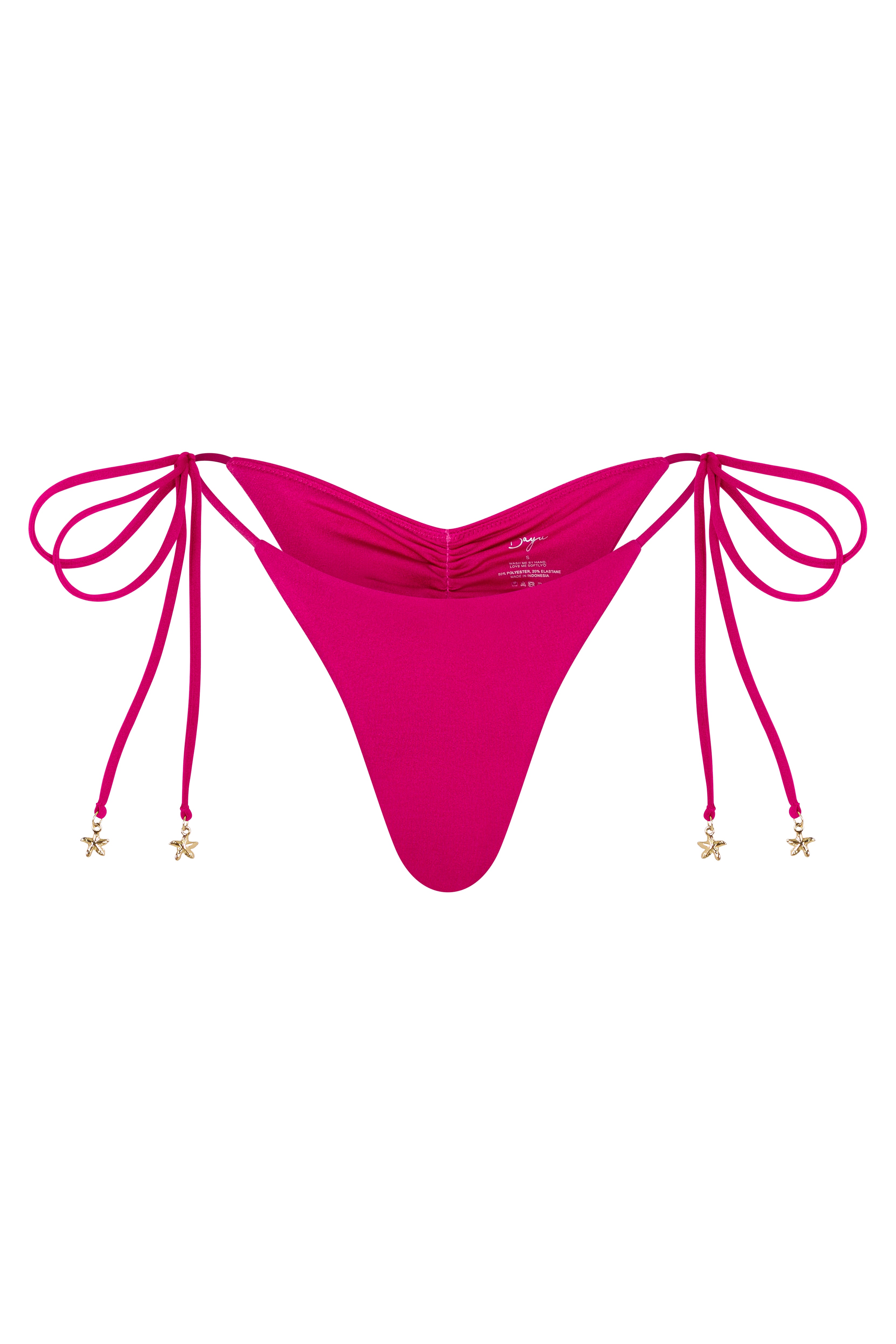 Meet the Tiki Bottom, a playful tie-side silhouette designed to flatter from every angle. Adjustable side ties let you customize the fit, finished with golden flower cord stoppers for a subtle jewellery-like touch. The ruched back detail enhances the shape for a more flattering, sculpted look.