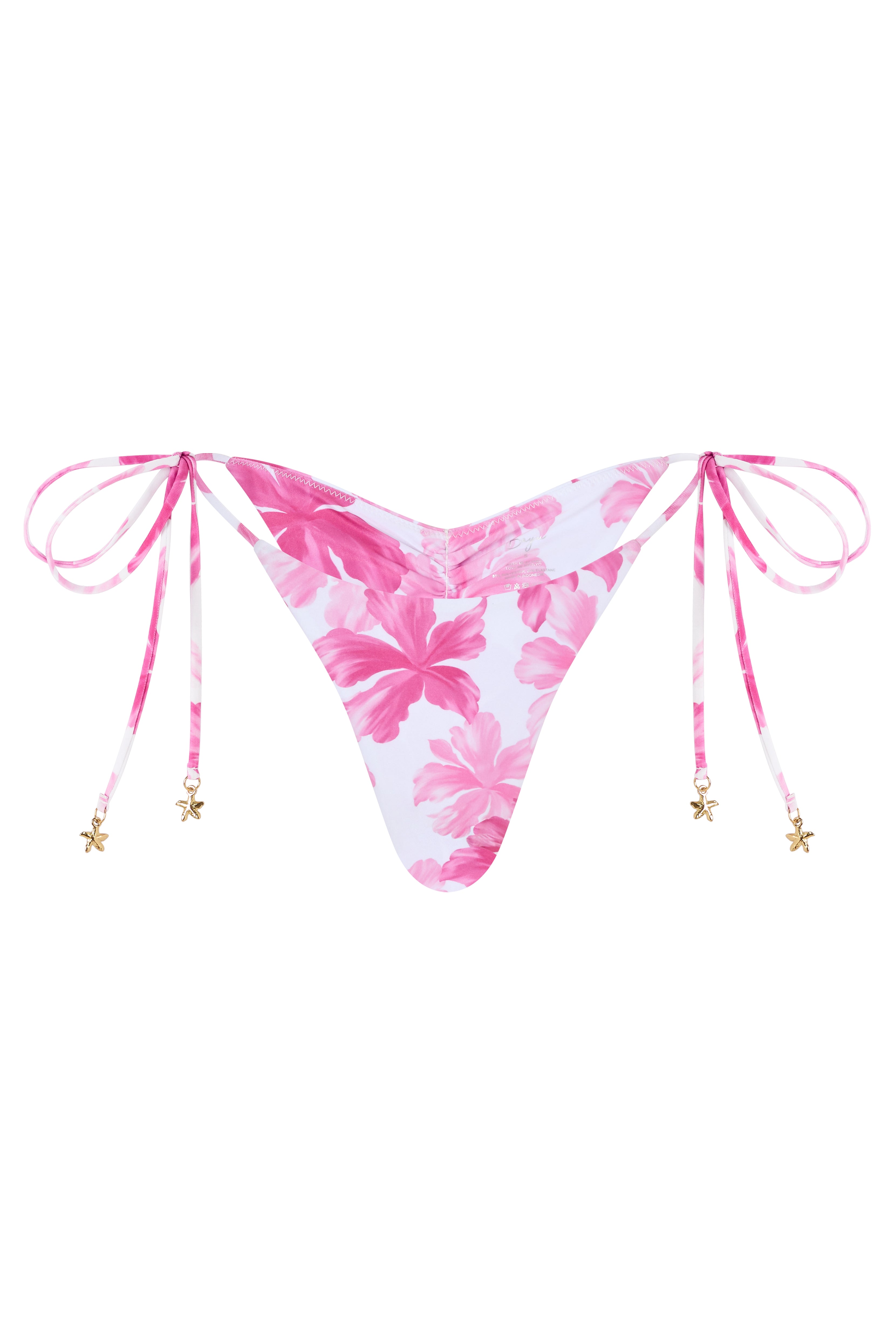 Meet the Tiki Bottom, a playful tie-side silhouette designed to flatter from every angle. Adjustable side ties let you customize the fit, finished with golden flower cord stoppers for a subtle jewellery-like touch. The ruched back detail enhances the shape for a more flattering, sculpted look.