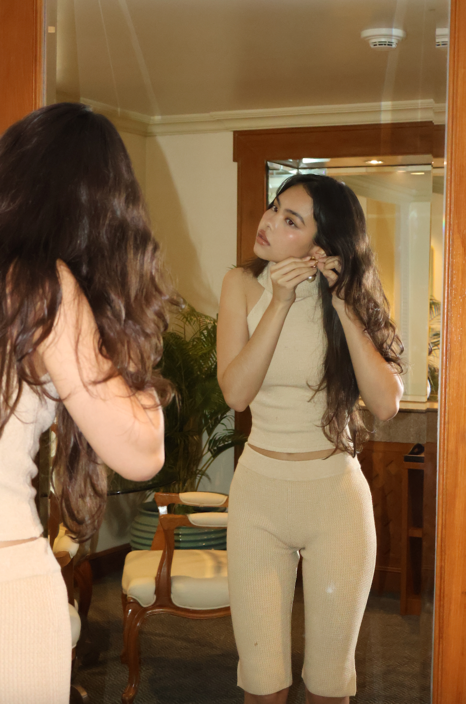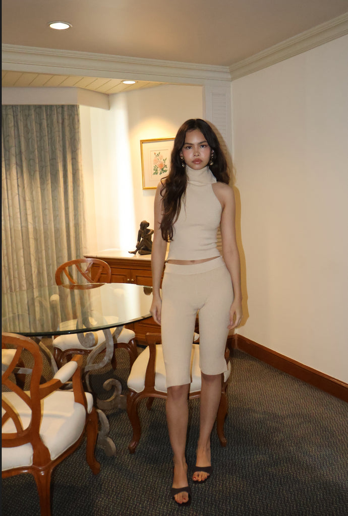 The Capri Pants bring back a 90s classic with a modern, minimalist twist. Designed in a soft, stretchy ribbed knit, they hit just below the knee for a clean, sculpted silhouette that flatters every shape. The mid-to-high waist gives a smooth fit, while the subtle split at the hem adds movement to the leg. Soft yet structured, these pants are perfect for layering with this collection’s knitted tops or dressing up with boots and a coat.