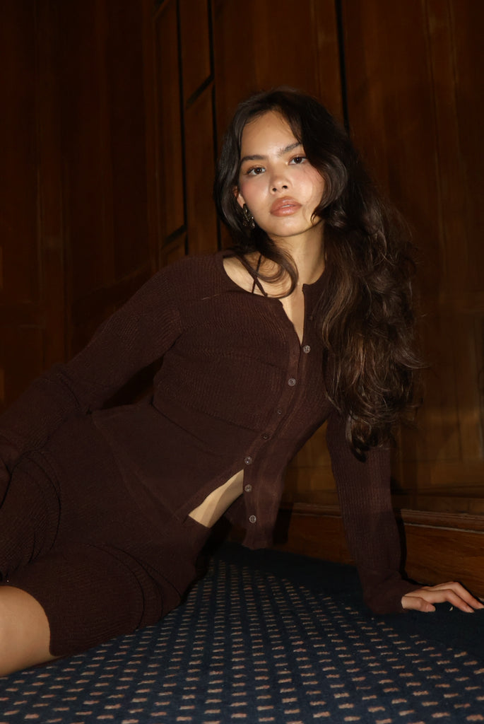 Meet the Mira Top ,where cozy texture meets sleek, modern lines. Crafted from a soft, stretchy knit that flatters every curve, it feels as good as it looks. The fit is clean and feminine with slightly flared sleeves and a snatched waist that complements the figure. Finished with tonal buttons and a subtle neckline, it’s polished when fully buttoned and effortlessly relaxed when worn open. Perfect with matching Niva Pants for a put-together look.