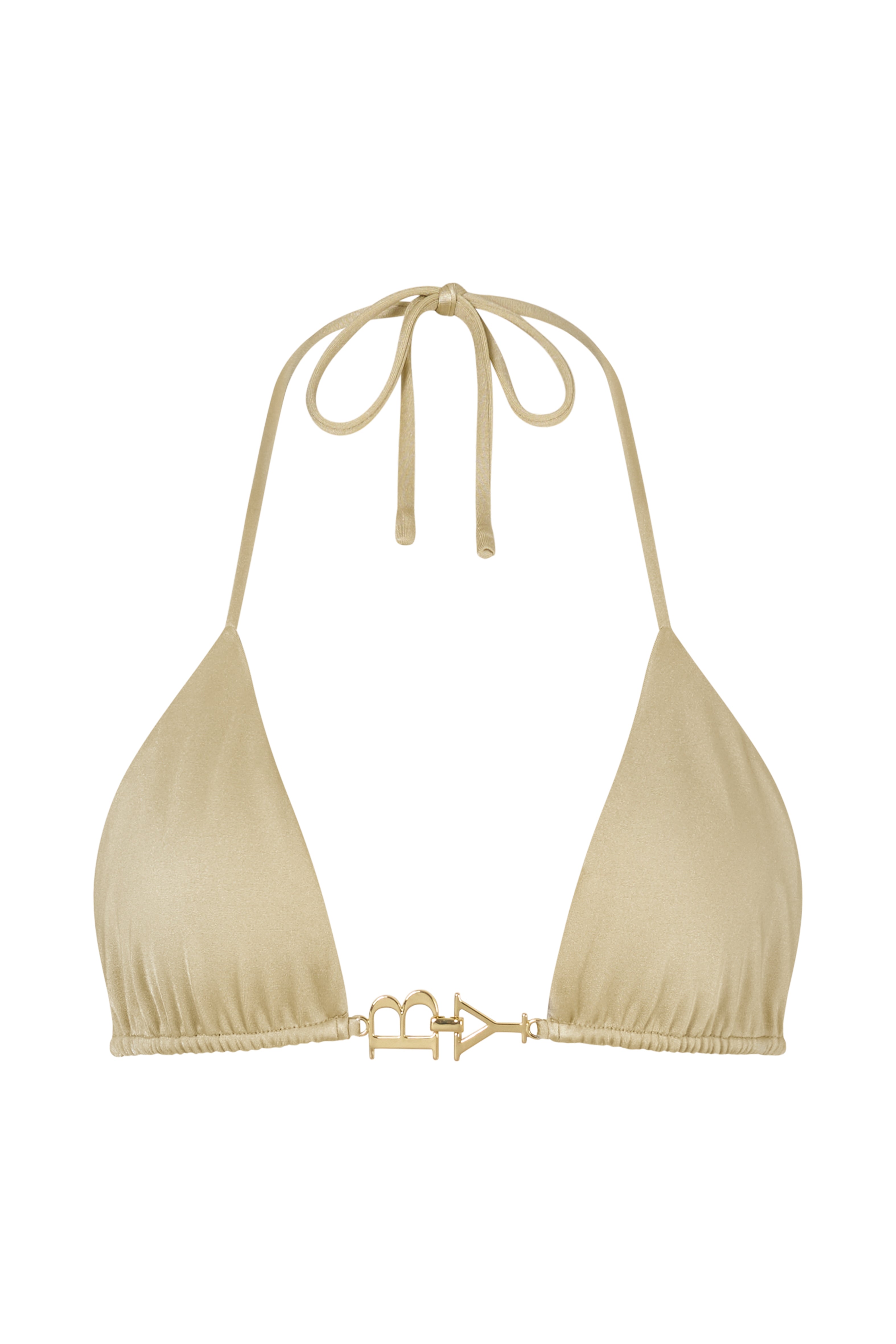 The Bisou Top is a playful take on the classic triangle, refined through a lingerie-inspired lens. Cut small and precise, it features soft sliding cups, finished with our gold statement BY clasp at the center early-2000s glamour. Delicate neck and back ties allow you to adjust the fit with ease, while the removable padding offers flexible shaping depending on how you choose to wear it. Sweet, confident, and unmistakably Bayu.