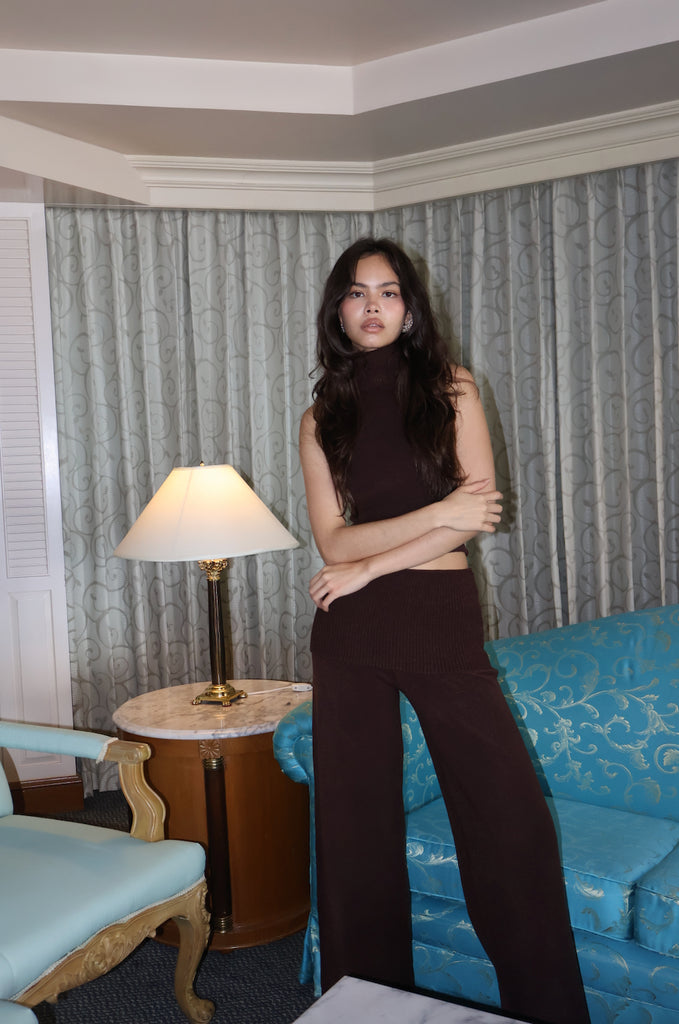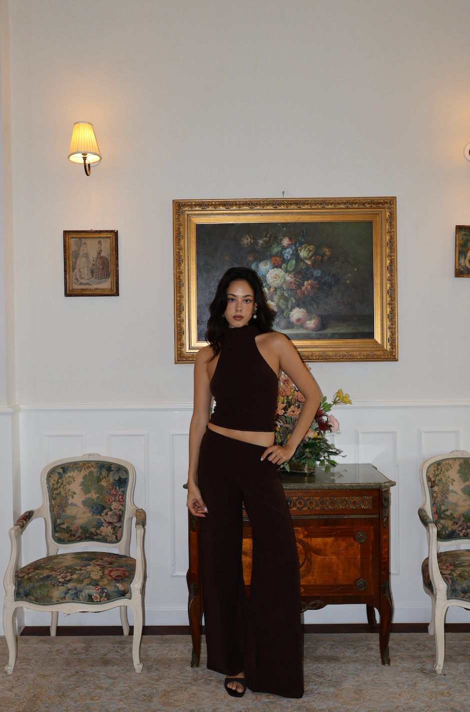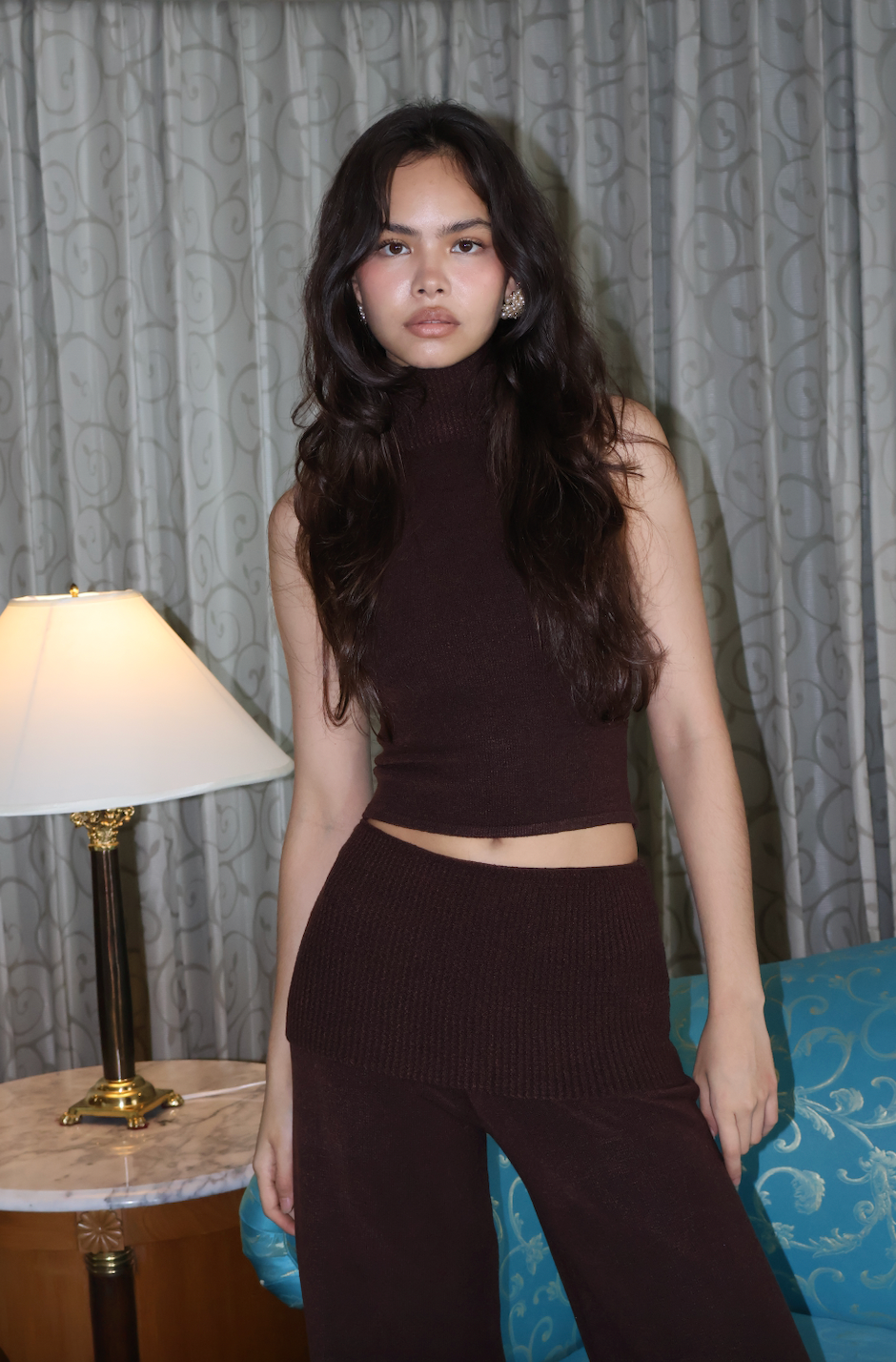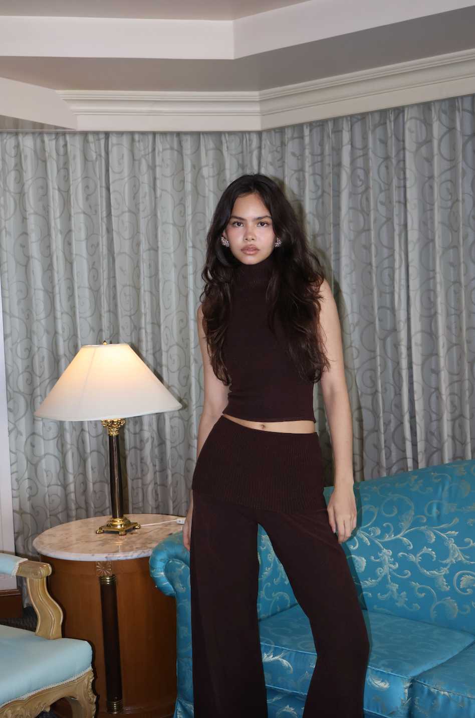 The Niva Pants redefine cozy chic. Designed with a flattering fold-over waistband that sculpts the waist and adds a relaxed edge, these full-length flared knit pants are your go-to this season. Crafted from a soft, stretchy ribbed knit, they hug in all the right places and flow into an elegant, easy leg. Warm yet breathable, they pair perfectly with the Mira Top or Rumi Top for a clean, matching look. Whether styled at home, in the city, or for your next getaway, Niva brings comfort that still looks put-together.