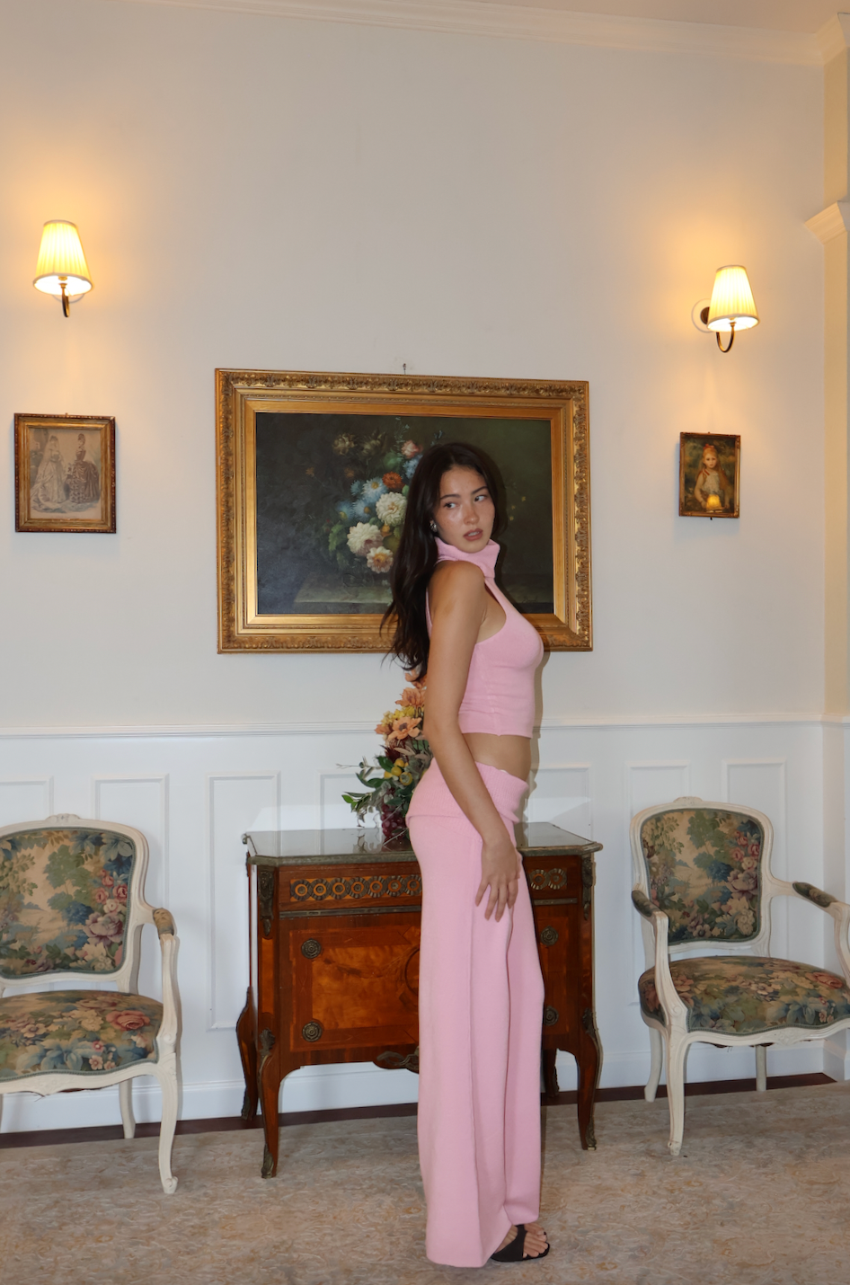 The Rumi Top is the definition of effortless polish. A sleek halter neck knit with a soft, fold over turtleneck, it balances minimal design with a feminine edge. Crafted from a smooth, stretchy ribbed fabric, it hugs the body beautifully while staying soft and breathable. The cropped, body-skimming fit highlights the shoulders and waist, perfect for layering under blazers or styled with the collection's matching pieces for an effortless head-to-toe look. Easy, elegant, and endlessly wearable, Rumi is the knit that elevates every outfit.