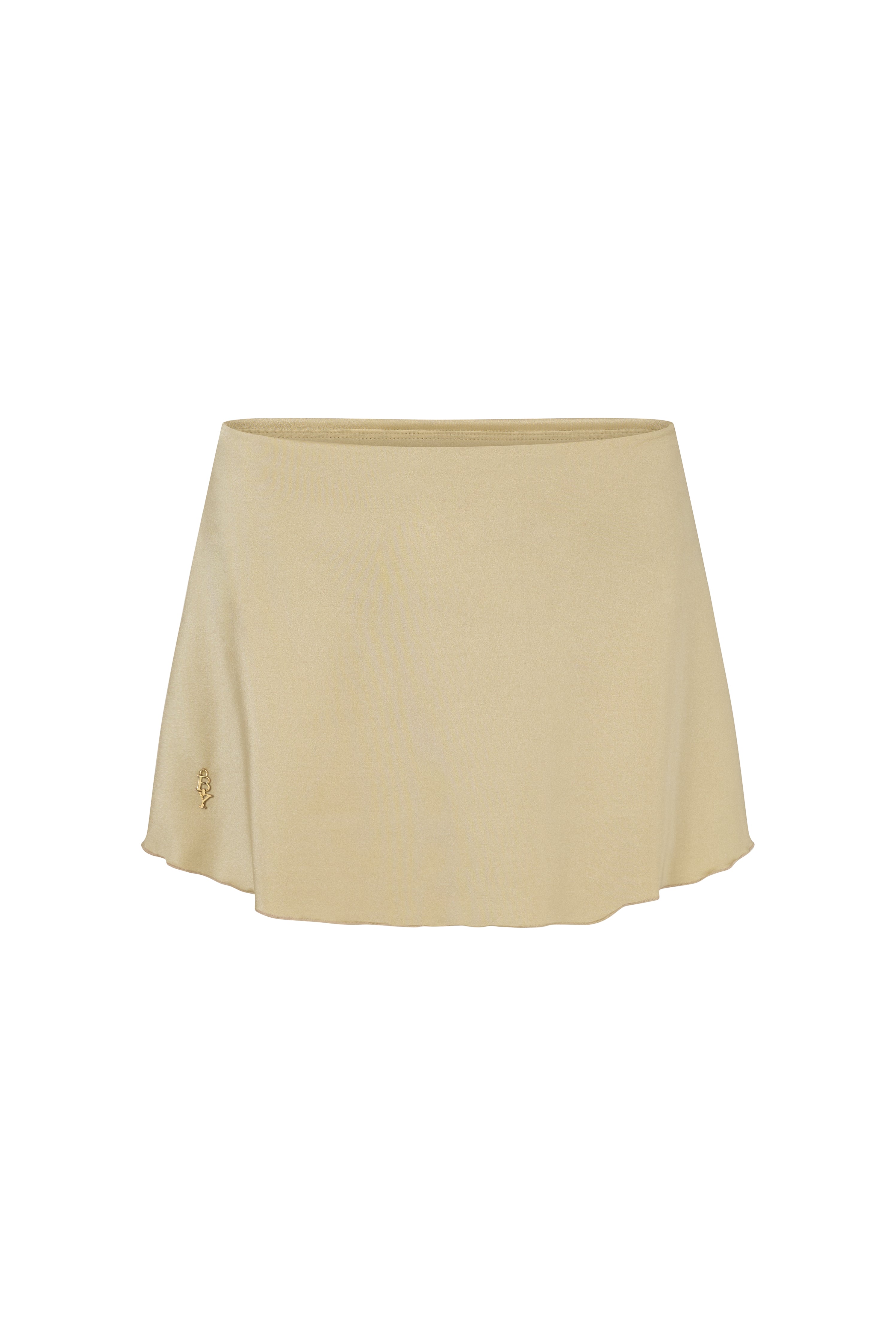 The Flourette Mini Skirt is a clean, low-rise mini designed with a built-in bikini bottom for ease and confidence. Cut to sit smoothly on the hips, it offers the look of a classic mini skirt with the comfort and coverage of swimwear underneath. The outer skirt layer skims the body lightly, while the integrated bikini bottom allows you to move freely without compromising the silhouette. Finished with a delicate BY gold detail, Flourette feels playful yet considered and is designed to be worn effortlessly as swimwear or styled as part of your look. Pair it with the matching Baiser Top to create that playful, coordinated look.