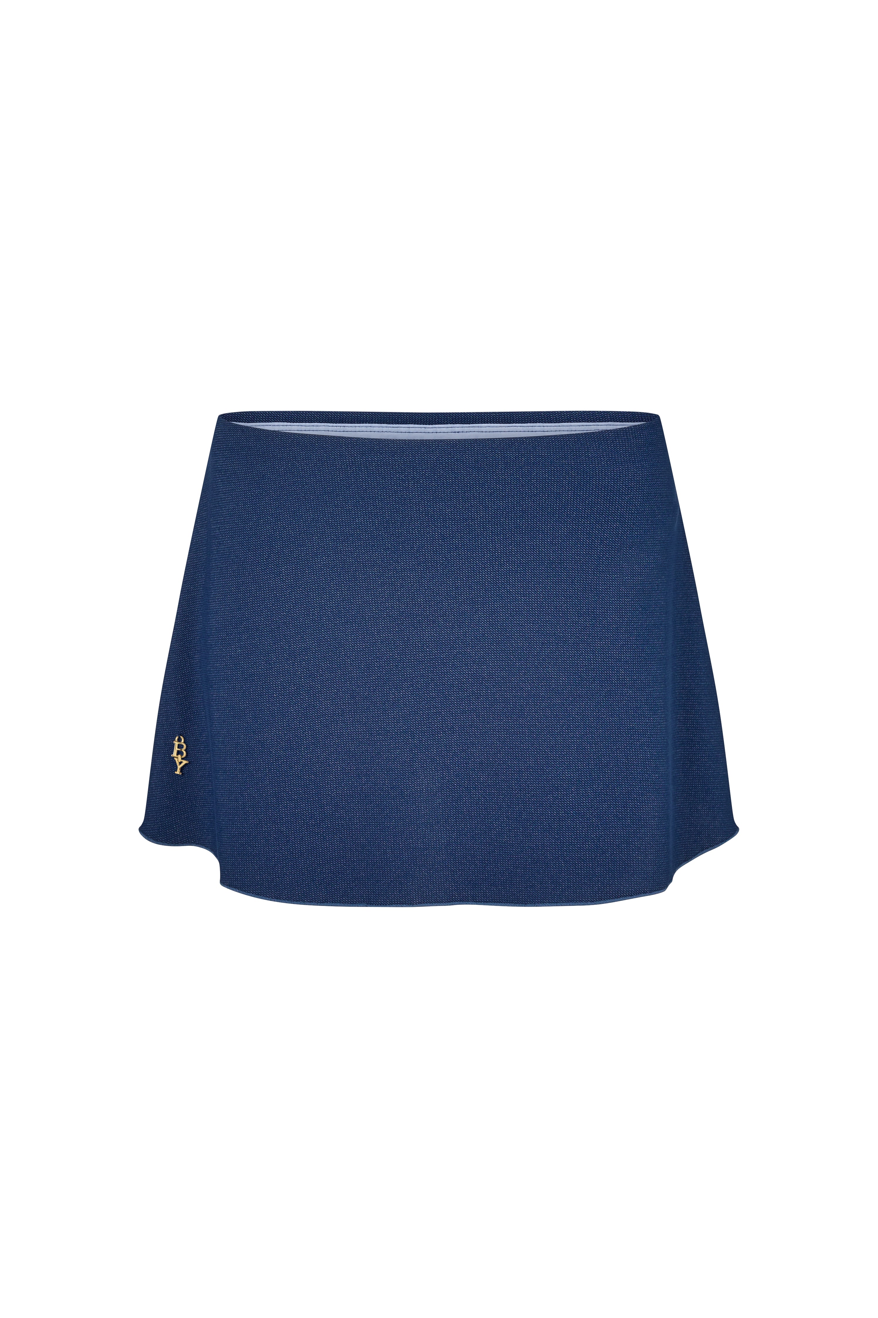 The Flourette Mini Skirt is a clean, low-rise mini designed with a built-in bikini bottom for ease and confidence.Crafted from textured Denim-look fabric and cut to sit smoothly on the hips, it offers the look of a classic mini skirt with the comfort and coverage of swimwear underneath. The outer skirt layer skims the body lightly, while the integrated bikini bottom allows you to move freely without compromising the silhouette. Finished with a delicate BY gold detail, Flourette feels playful yet considered and is designed to be worn effortlessly as swimwear or styled as part of your look. Pair it with the matching Baiser Top to create that playful, coordinated look.