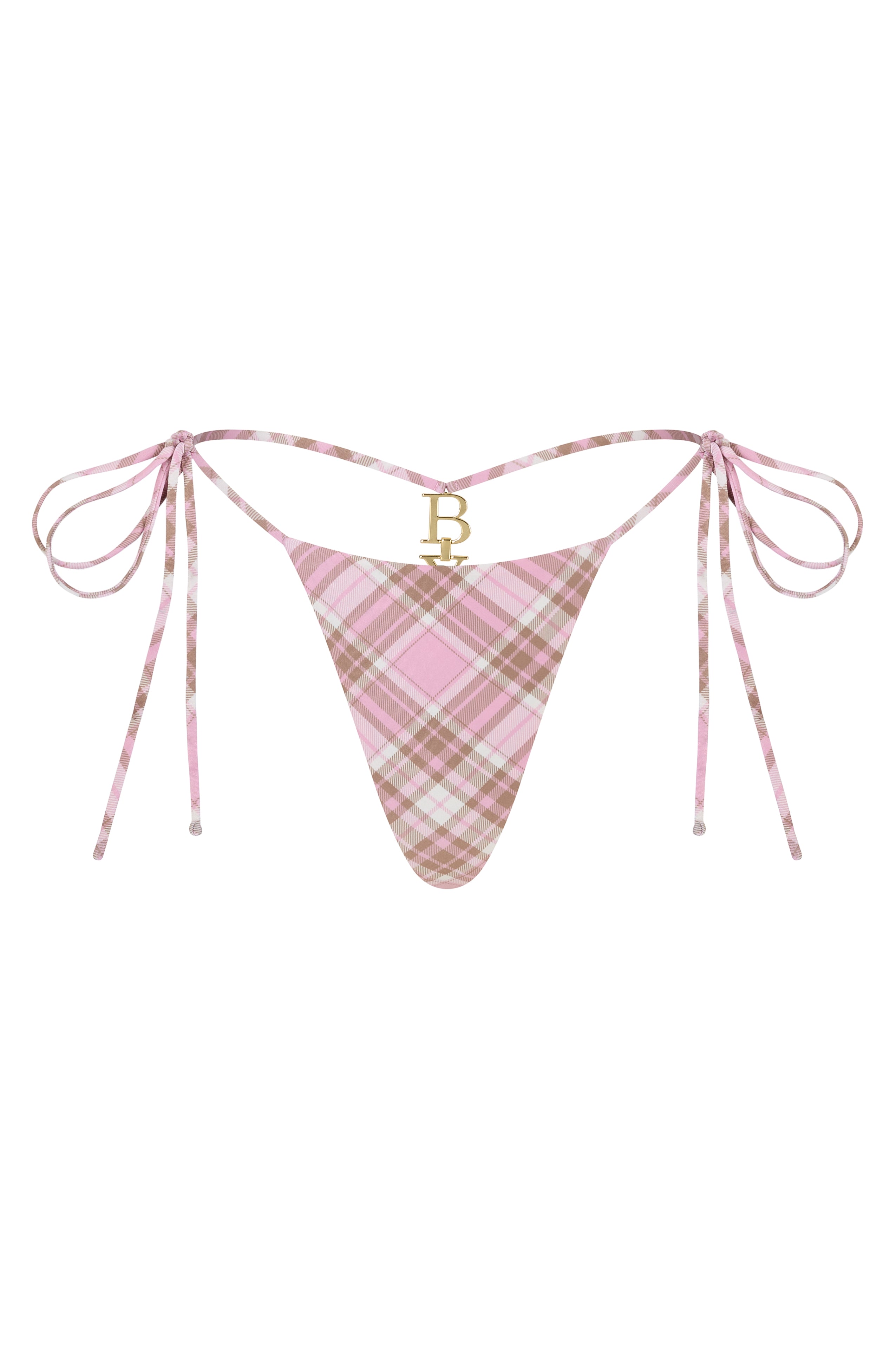 The Petit Bottom is the boldest expression within the JE T’AIME collection - a minimalist thong silhouette designed with a high cut shape that creates an elongated line through the leg, while fine adjustable side ties frame the body with precision. Minimalist thought silhouette finished with our gold statement BY detail at the back, Petit is designed to be seen. More than swimwear, this piece is a styling staple. Layered under open back dresses or low rise silhouettes, Petit is the star of the show.