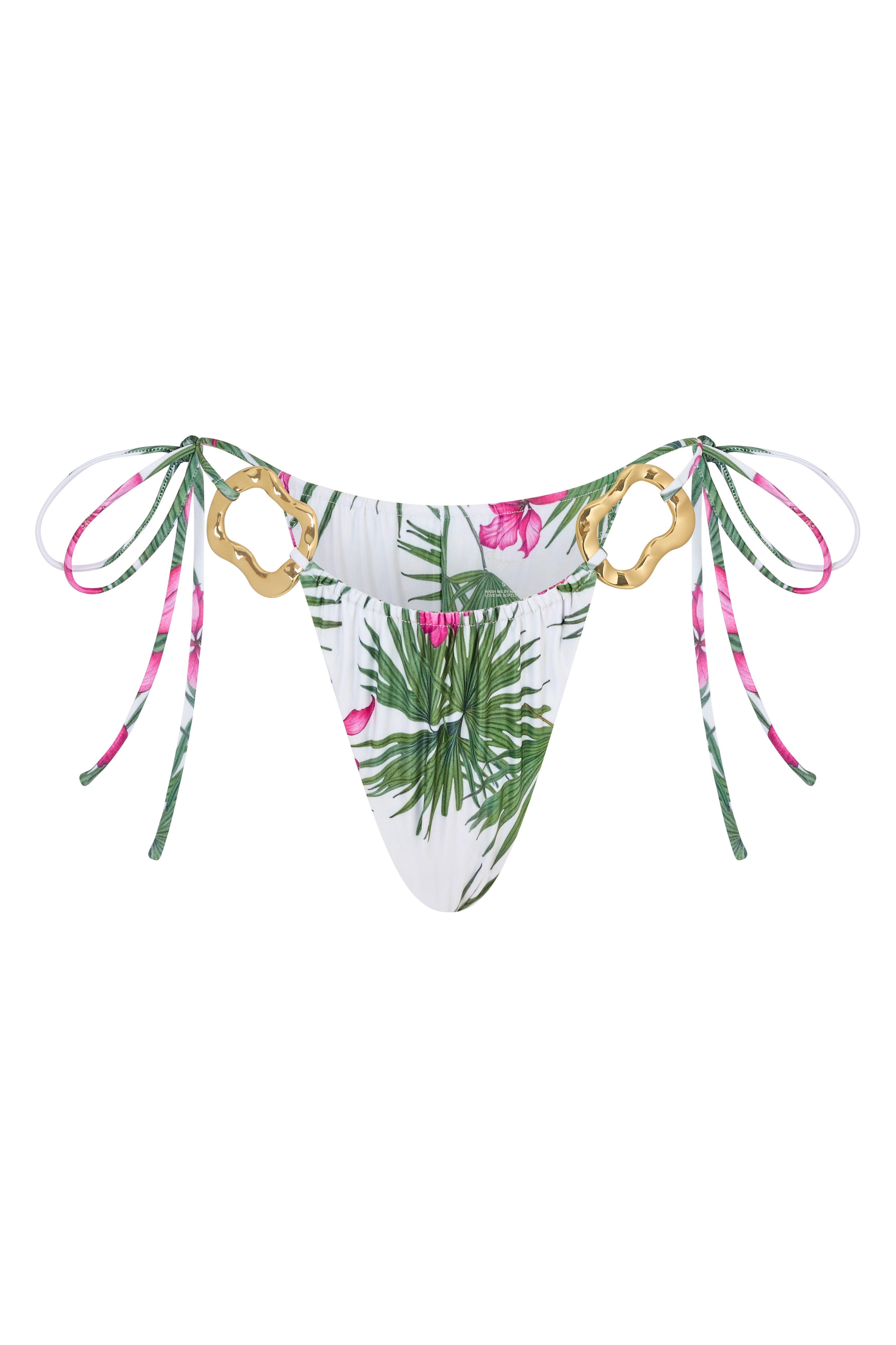 The Sena Bottom is our signature tie-side bottom, designed with clean lines and a barely-there feel. Wear it high on the hips for a longer leg look, or lower for minimal tan lines. Finished with our signature gold hardware, it adds a bold, jewellery-like touch to a minimal silhouette.